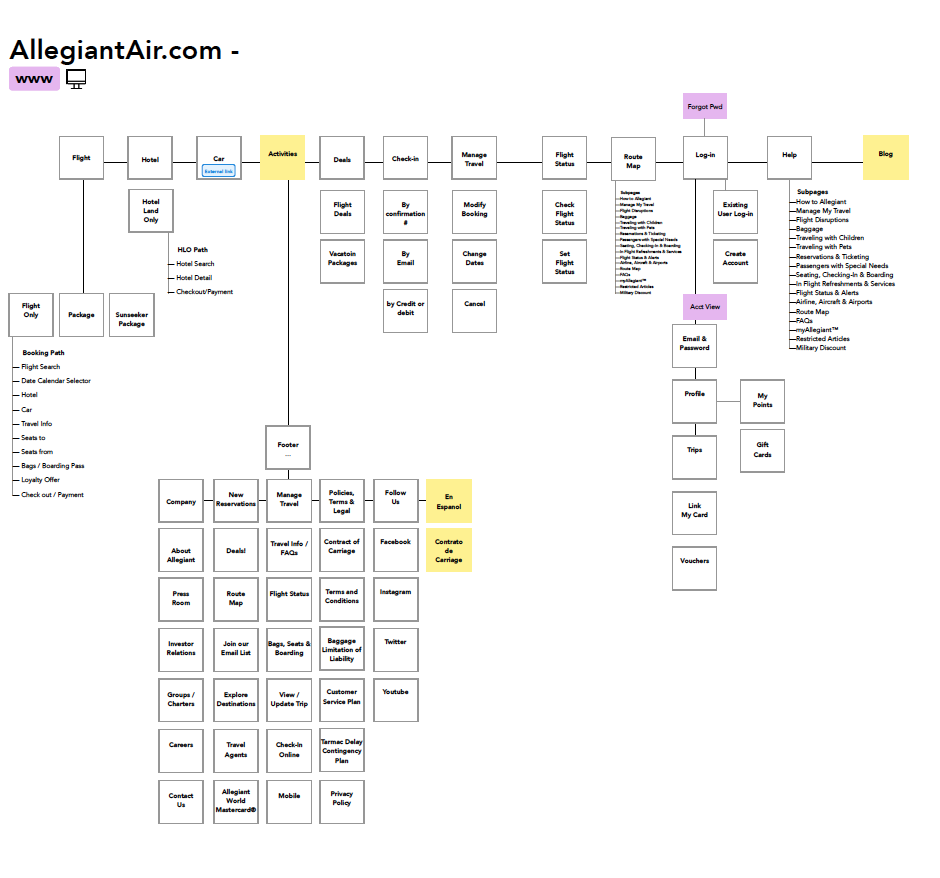 Reimagining the experience meant evolving everything from the brand through re-platforming. We conducted onsite visits, sentiment surveys, user testing, brand workshops, competitive analysis, content strategy, site mapping, migration, and everything in between to create a brand new Allegiant.